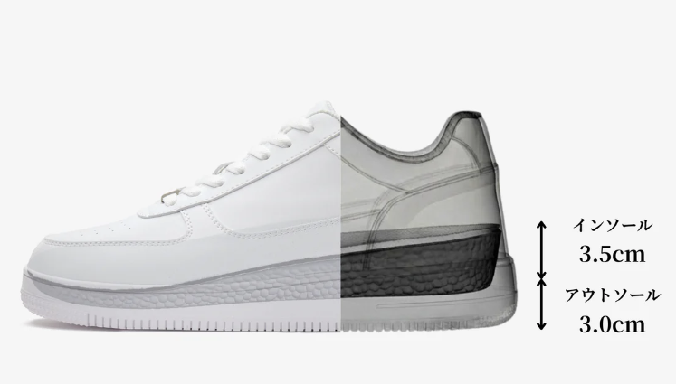 アウトソールは一般的なスニーカーと同じ厚さなので、外から見て身長アップシューズだと気づかれる要素がありません。