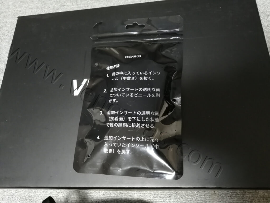 VERARUS本体の箱を開けると、靴と一緒にカードが入っていました。